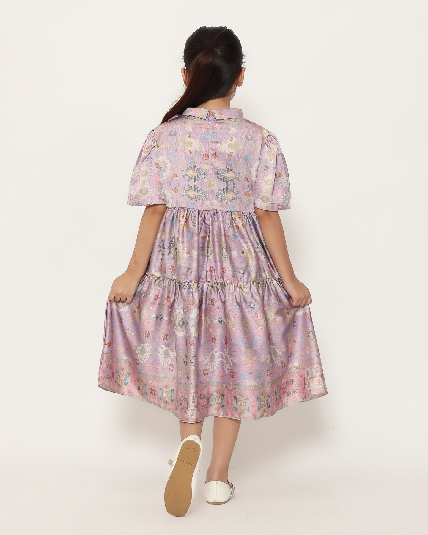 Size 3-4y : LD = 66 cm | P dress = 70 cm | P lengan = 15 cm | L ketiak = 24 cm | L leher = 40 cm | Lebar Dress bawah = 205 cm